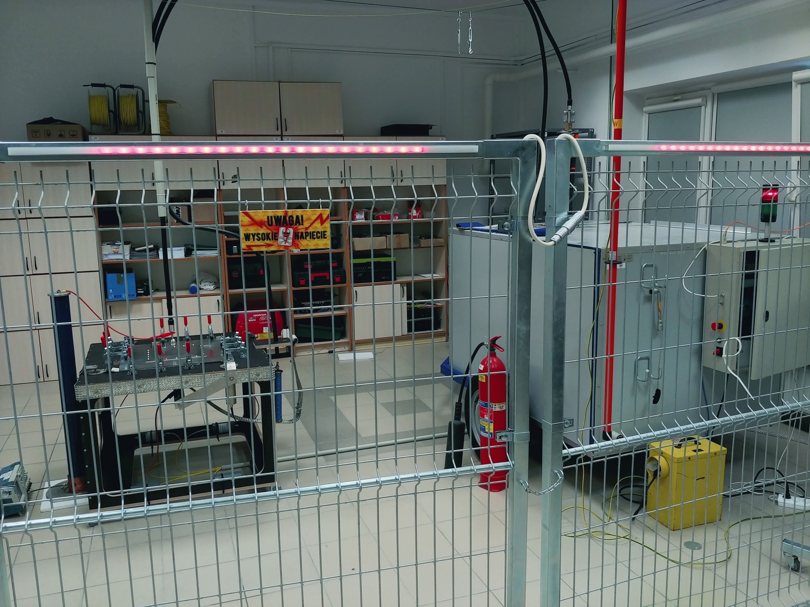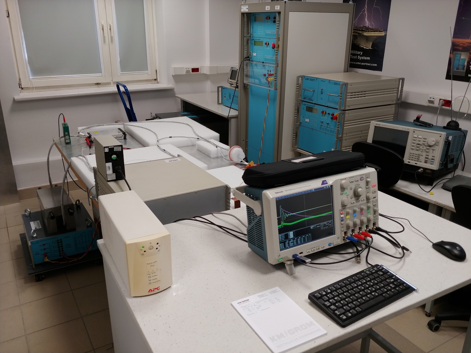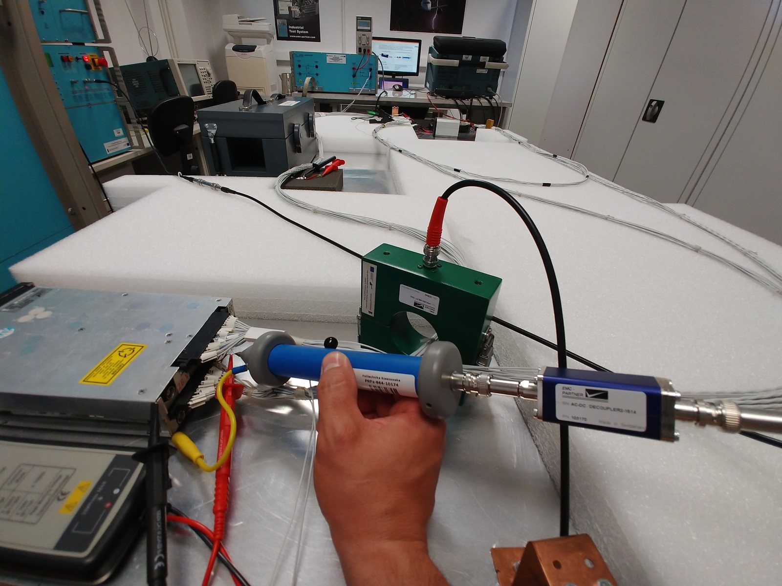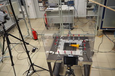 Laboratorium Odporności Awioniki na Wyładowania Atmosferyczne. Widok stanowiska pomiarowego w jednej z konfiguracji.